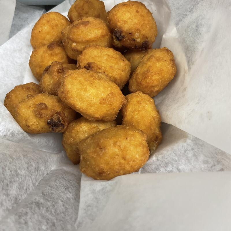 Pan of Hushpuppies, Pan of Mac n Cheese